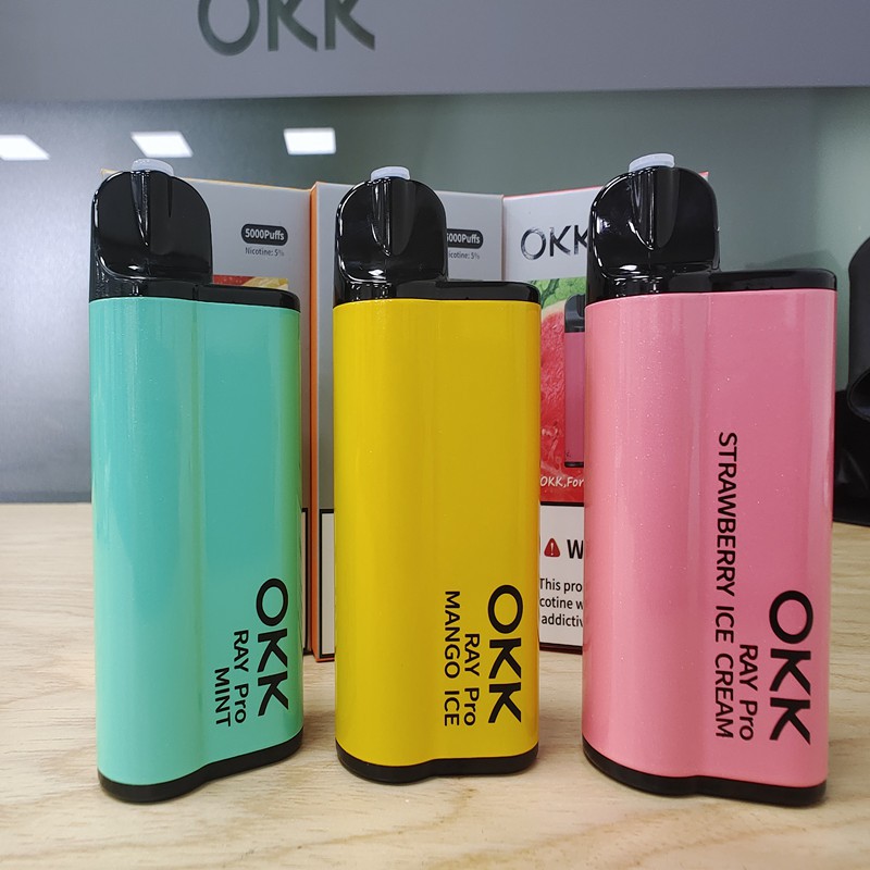 OKK RAY PRO 5000 Disposable Vapeは、充電式の使い捨て電子タバコで、大容量の電子タバコ オイルがあらかじめ充填されています。 OKK Ray Pro Disposable Vapeは、650mAhの充電式バッテリーを搭載し、ニコチン濃度50mgの12mlの電子液体があらかじめ充填されており、最大5000回の吸引が可能です。 大容量のたばこ油、つまり電源オフ時の充電です。 OKK Ray Pro Disposable Vape は持続的で本格的な MTL ポンピング体験をアークにもたらす必要があり、吸気活性化機能は使用プロセスをさらに簡素化します。